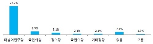 더불어민주당 73.2%, 국민의힘 8.5%, 정의당 5.1%, 국민의당 2.1%