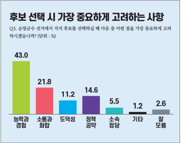 순창군수 후보를 선택할 때 가장 중요한 선택기준