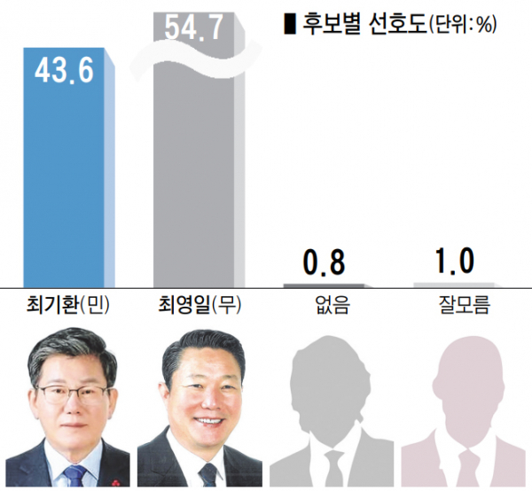 무소속 최영일 후보 54.7%, 민주당 최기환 후보 43.6%, 부동층 1.8%