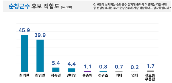 임순남타임즈 의뢰, (주)피플네트웍스리서치 3월 4일 전라북도 순창군에 거주하는 만 18세 이상 남녀 508명 대상