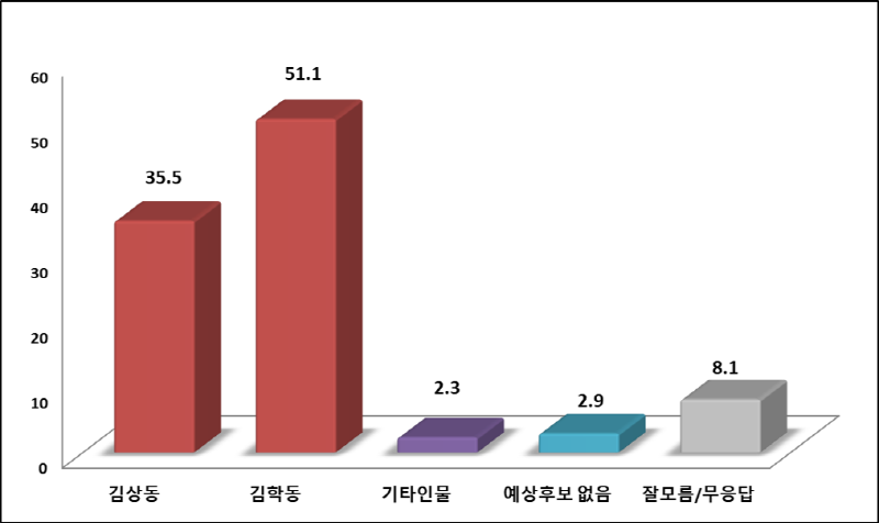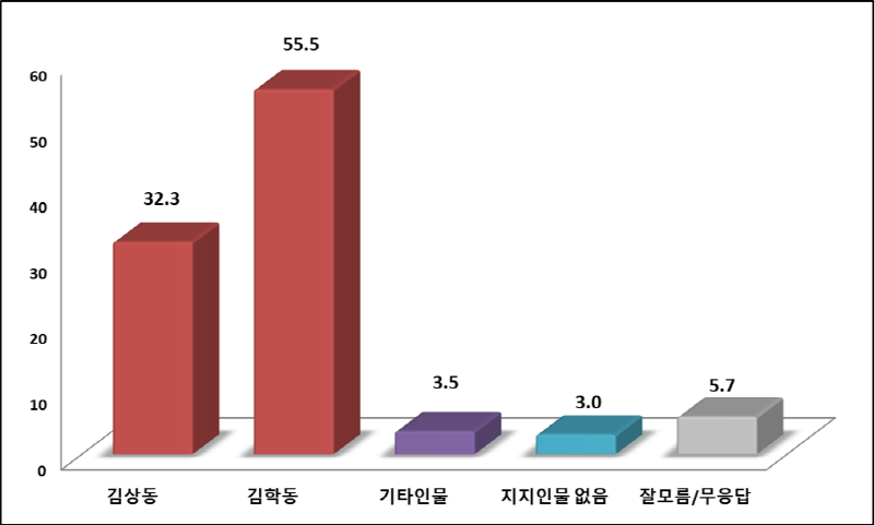 김상동 41.8.%, 김학동 54.0%, 기타 0.9%, 없음 0.8%, 모름 2.5%