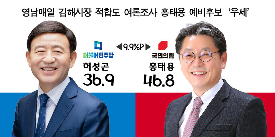 더불어민주당 허성곤 36.9%, 국민의힘 홍태용 46.8%, 지지하는 후보가 없다 12.5%, 잘모름 3.8%