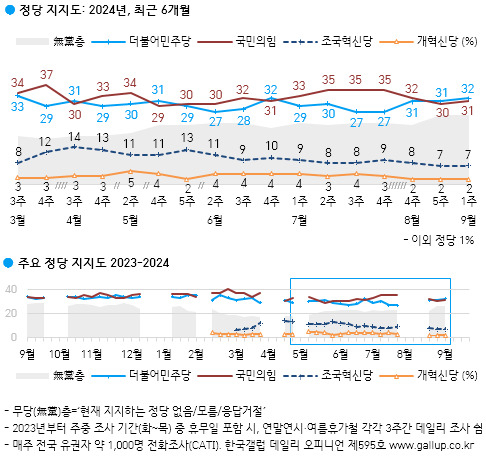 한국갤럽 2024년 9월 3~5일 전국 만 18세 이상 1001명 대상 조사