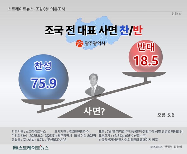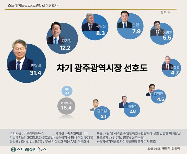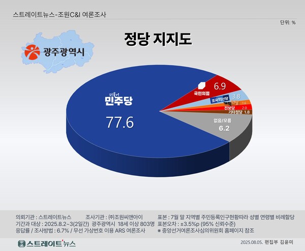 스트레이트뉴스 의뢰, 조원씨앤아이 2025년 8월 2~3일 2일간 광주광역시 거주 만 18세 이상 남녀 803명 대상 조사