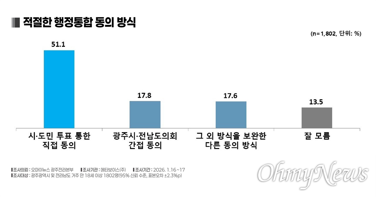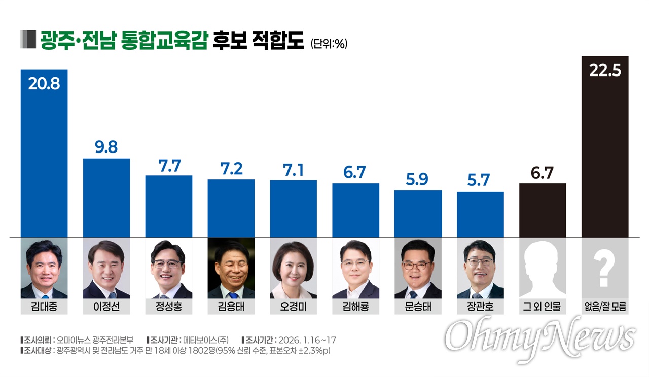 오마이뉴스 광주전라본부 의뢰, 메타보이스 1월 16~17일, 18세 이상 광주·전남 시·도민 1802명 대상 조사