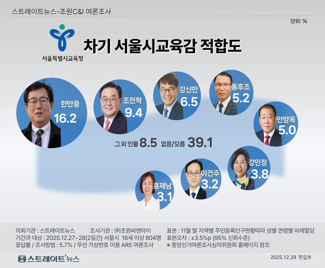 스트레이트뉴스 의뢰, 조원씨앤아이 12월 27~28일 서울특별시 거주 18세 이상 남녀 804명 대상 조사