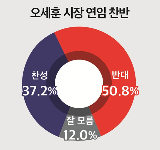 - 연령대별로는 18~29세에서 오 시장 지지가 34.8%로 가장 높았고, 70세 이상에서도 36.6%를 기록했다. 반면 40대와 50대에서는 각각 24.2%, 22.6%로 상대적으로 낮았다.