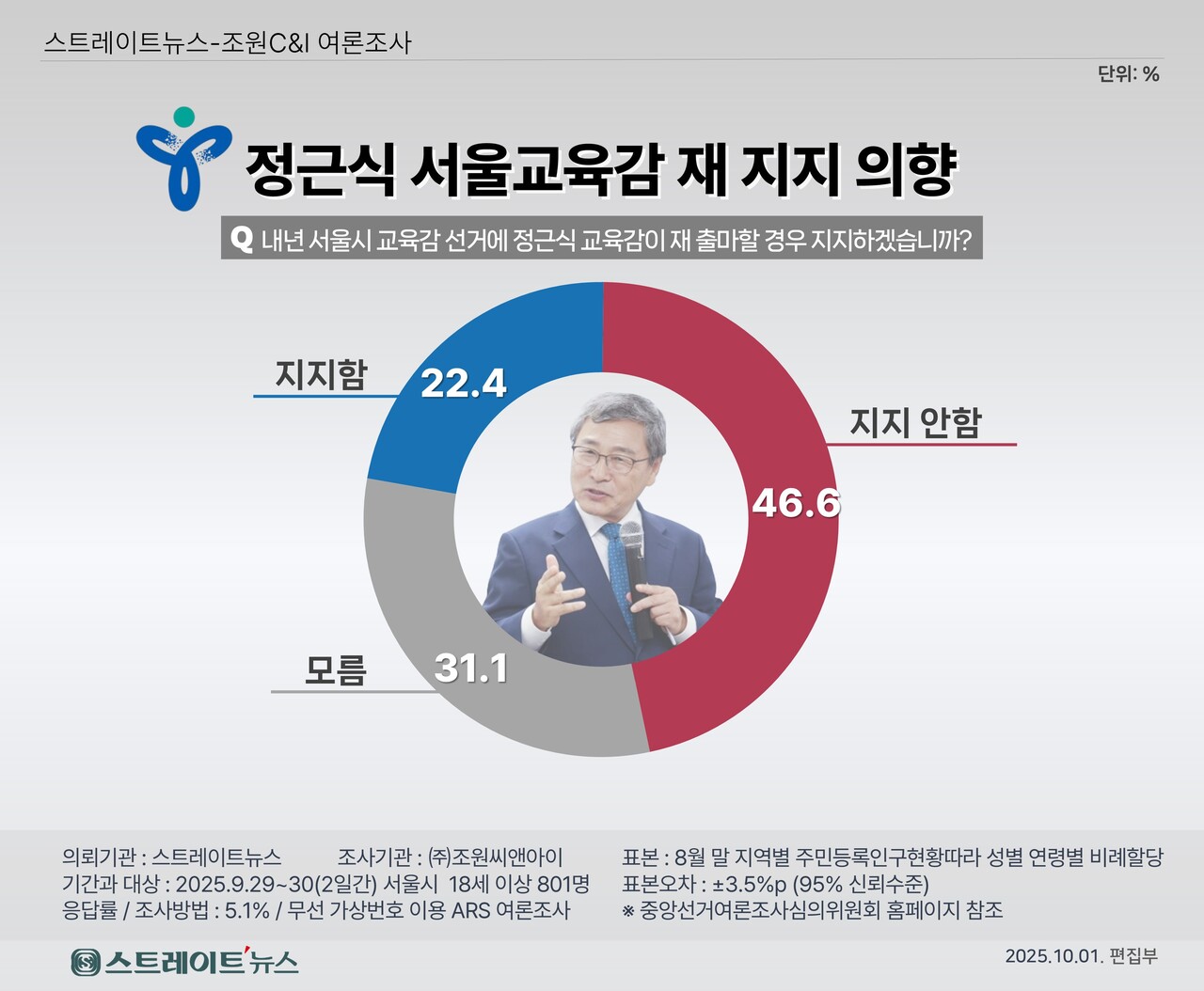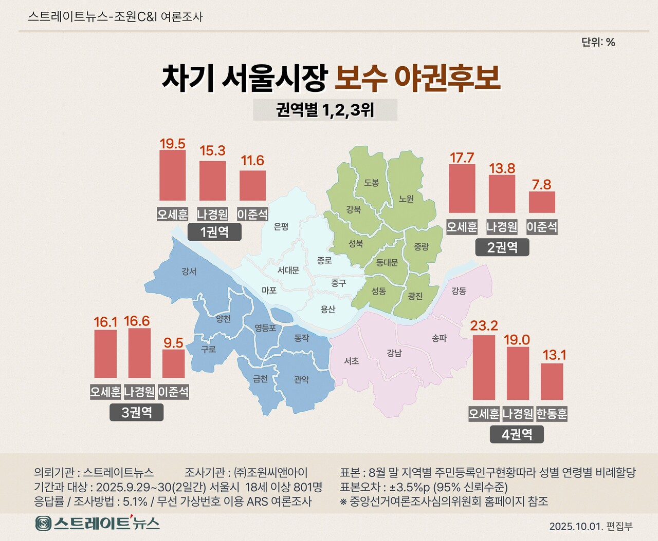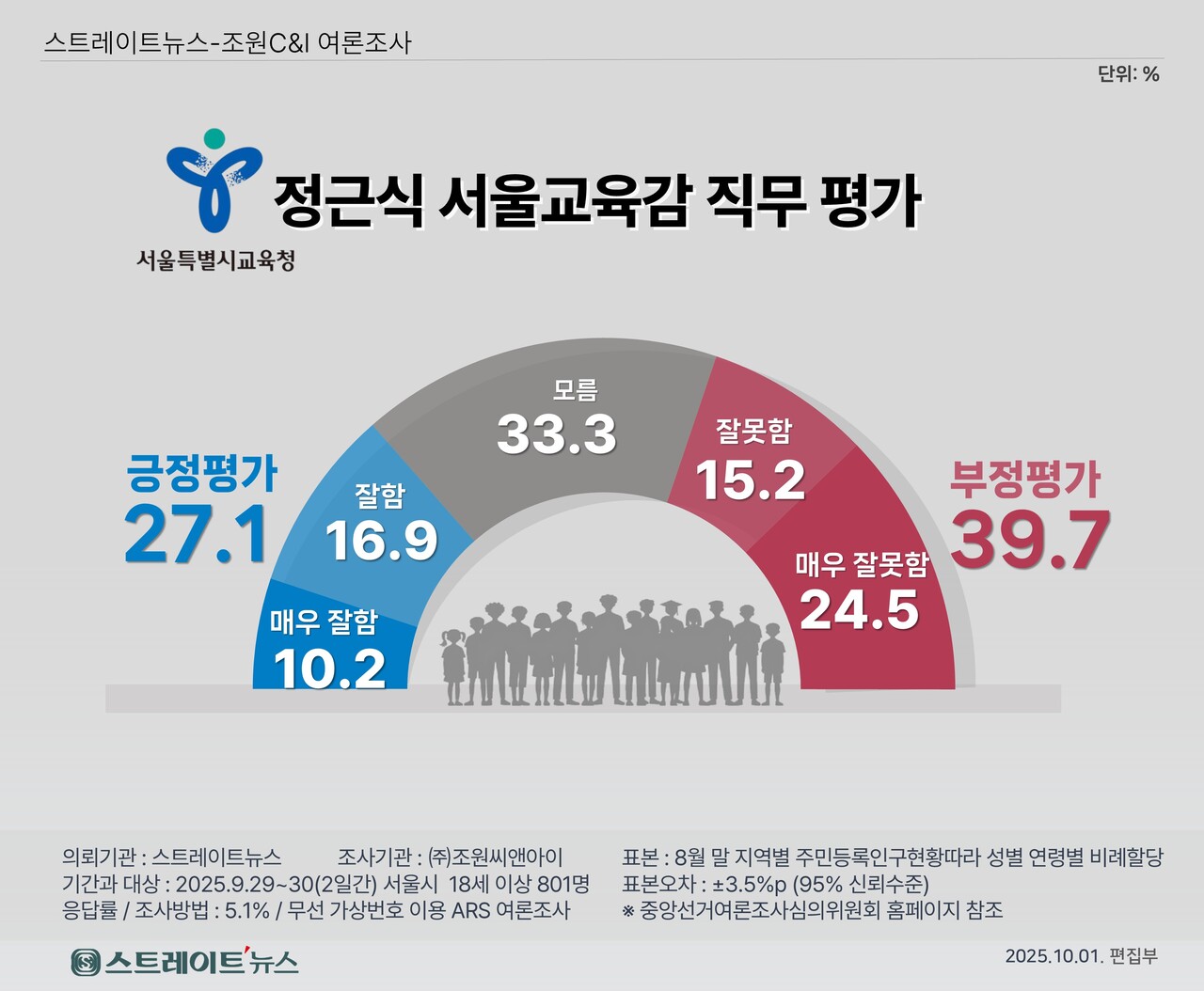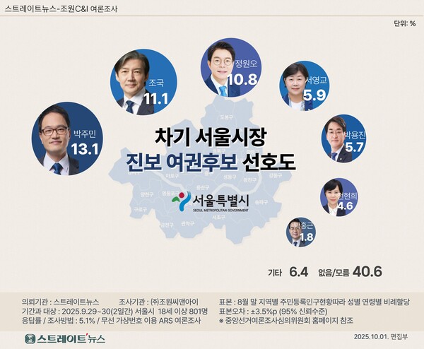 스트레이트뉴스 의뢰, 조원씨앤아이 2025년 9월 29~30일 서울시 거주 18세 이상 남녀 801명 대상 조사