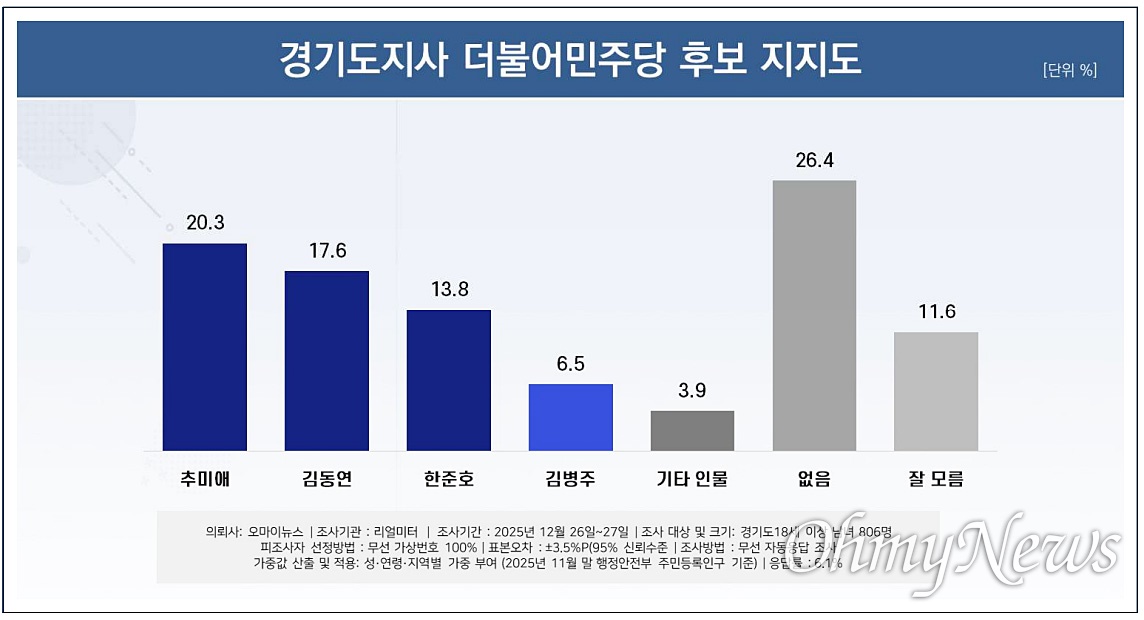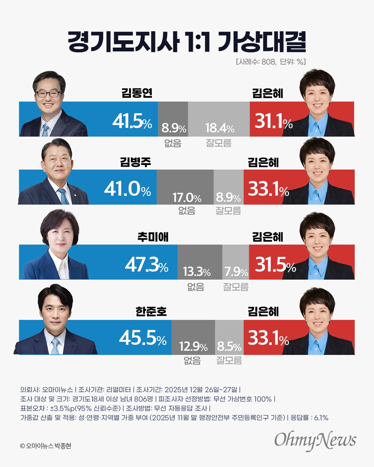 - 세부적으로는 성·연령·권역과 관계없이 모두 김동연 경기도지사가 선두였다.