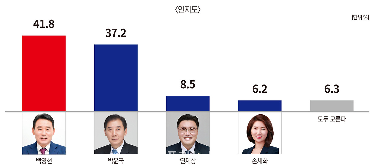 백영현 41.8%, 박윤국 37.2%, 연제창8.5%, 손세화 6.2%, 모두 모른다 6.3%