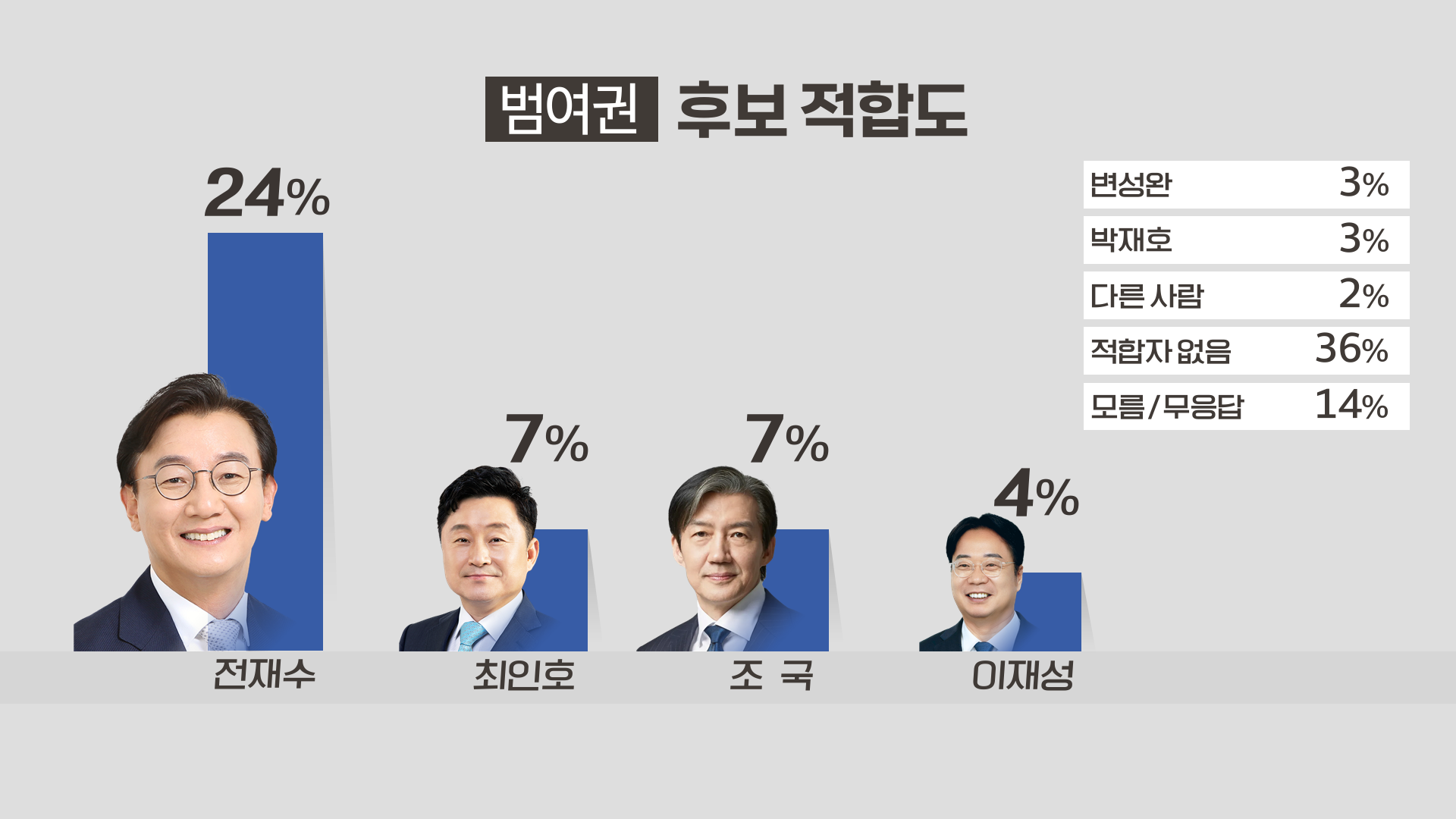 전재수 장관 24%, 최인호 전 이재명 대통령 후보 선대위 해양수산위원장 7%, 조국 비대위원장 7%