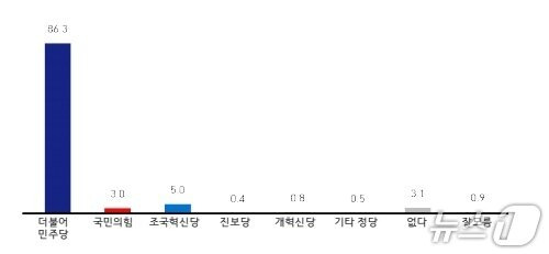 더불어민주당 86.3%, 조국혁신당 5.0%, 국민의힘 3.0%, 개혁신당 0.8%, 진보당 0.45%