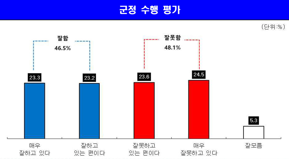 ‘잘못하고 있다’ 48.1%, 긍정 평가 46.5%
