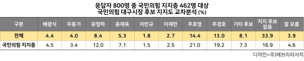 국민의힘 대구시장 후보 지지도