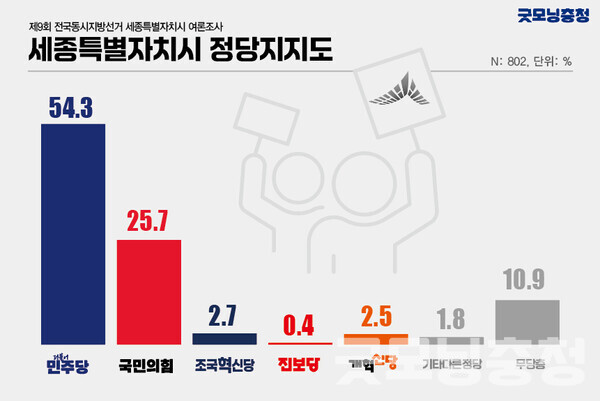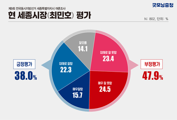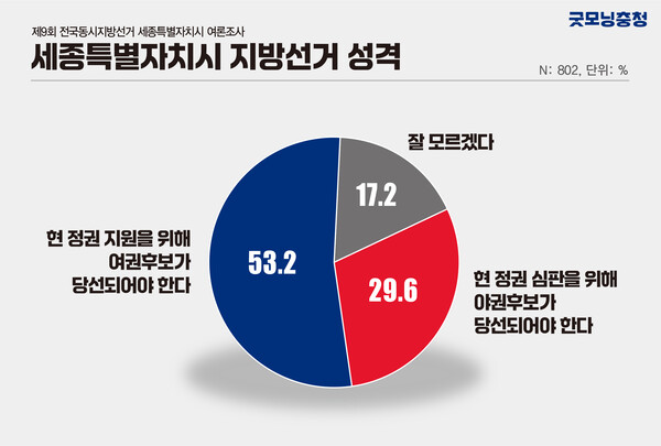 * 이번 여론조사는 굿모닝충청이 ㈜윈지코리아컨설팅에 의뢰해 세종시 거주 만 18세 이상 남녀 802명을 대상으로 지난달 26일부터 27일까지 진행됐다.