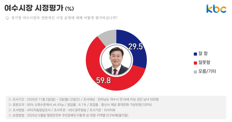 KBC 광주방송 의뢰, 리서치뷰 11월 2~3일 여수에 거주하는 만 18살 이상 유권자 500명 대상 조사