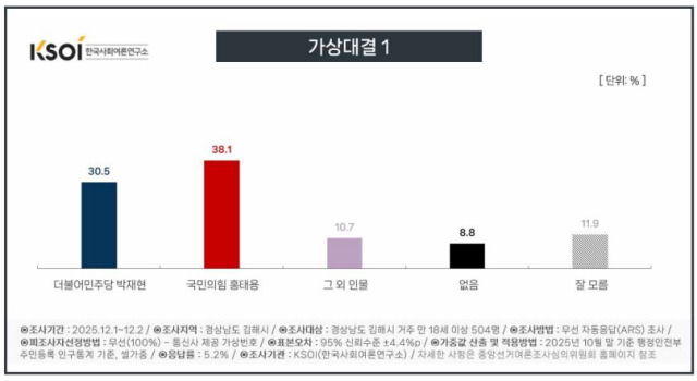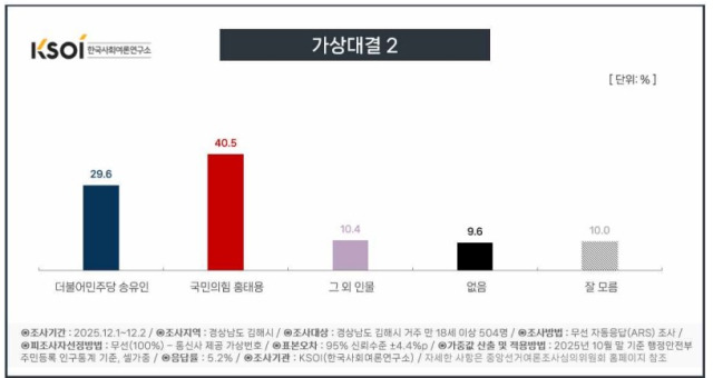 프레시안 의뢰, 한국사회여론연구소(KSOI) 12월 1일~2일 경남 김해시 거주 유권자 504명 대상 조사