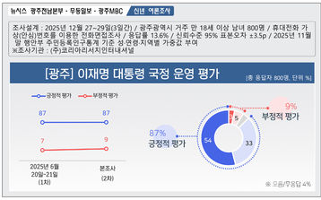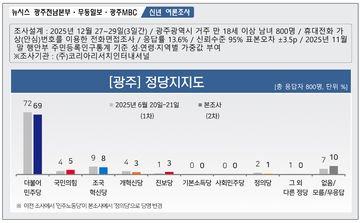 뉴시스 광주전남본부와 무등일보, 광주MBC 의뢰, 코리아리서치인터내셔널 12월 27~29일 광주 거주 18세 이상 남녀 800명 대상 조사