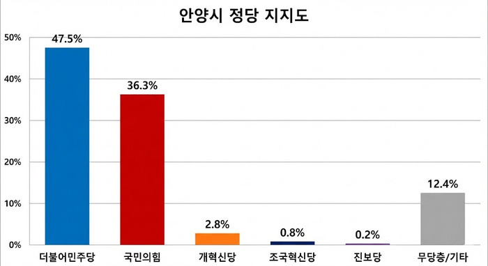 통계보정은 2025년 11월말 기준 행정안전부 주민등록인구통계에 따라 성별ㆍ연령별ㆍ지역별 가중치를 부여했고, 표본오차는 95% 신뢰수준에 ±4.3%p다. 자세한 내용은 안양신문과 중앙선거여론조사심의위원회 홈페이지를 참조하면 된다.