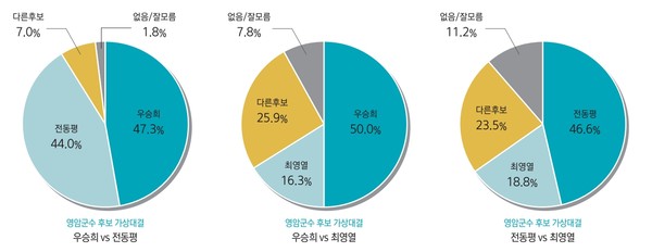 우승희 군수 50.0%, 최영열 전 실장 16.3%