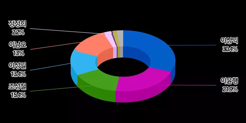 이상익 39.3%, 이윤행 30.4%, 지지 후보 없음 18.8%, 잘 모르겠음 11.5%